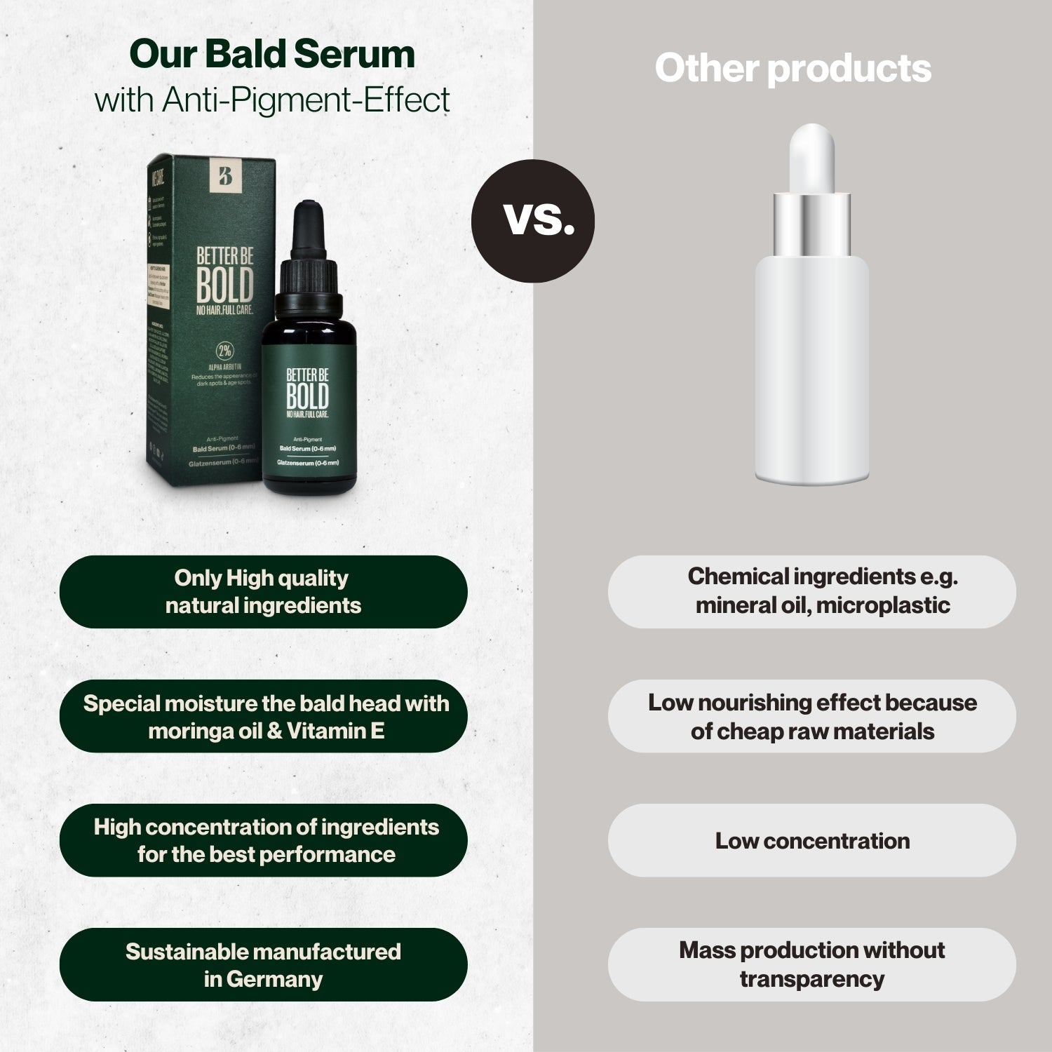 We are extremely proud that so many happy customers use our products every day and swear by the effectiveness of our bald care. The best selling bald care in Europe. Manufactured in Germany.